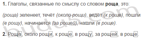 1. Прочитайте. Назовите глаголы, с которыми связано по смыслу слово роща.