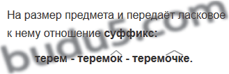 Прочитайте строки из сказки А. Пушкина и русской народной сказки. Сравните выделенные слова. Какая часть слова указывает на размер предмета и передаёт ласковое к нему отношение?