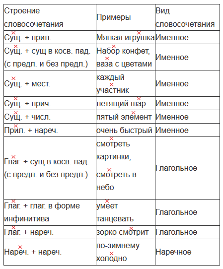В зависимости от главного слова словосочетания могут быть именными, глагольными и наречными.