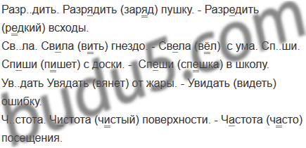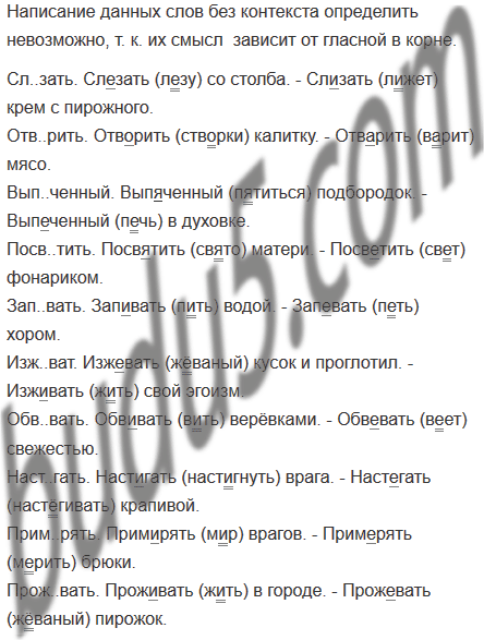 Образец записи: Выж..ть. Раненый боец выжил (жить).- Выжать лимон (жать).