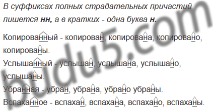 В каком случае в суффиксах причастий пишется одна буква н? Запишите не менее четырёх причастий в полной и краткой форме.