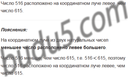 Какое из чисел 516 и 615 расположено на координатном луче левее?