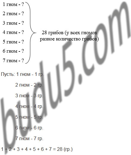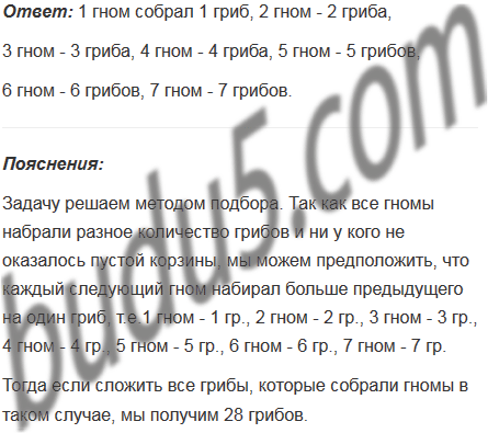Семь гномов собрали вместе 28 грибов. Все они собрали разное количество грибов, и ни у кого не оказалось пустой корзинки. Сколько грибов собрал каждый гном?