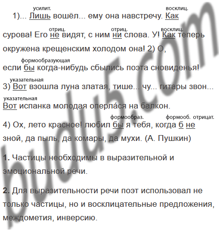 1. Выразительно прочитайте каждую фразу. Найдите частицы и определите разряд каждой из них. Сделайте вывод о роли частиц в выразительной и эмоциональной речи.