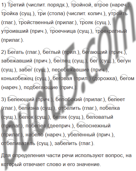 Спишите группу слов, выделяя корни, и определите, к какой части речи относится каждое слово. Какие языковые признаки слов вы учитывали, выполняя это упражнение?