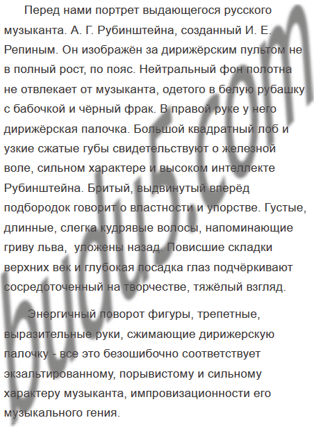 Опишите портрет А. Г. Рубинштейна по картине И. Е. Репина. Воспользуйтесь отрывком из рассказа А. И. Куприна.