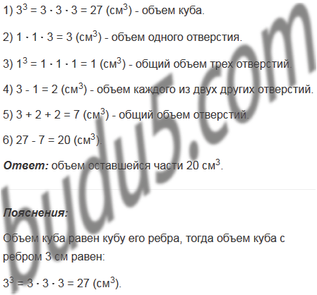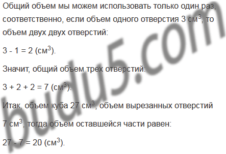 В кубе с ребром 3 см проделали три сквозных квадратных отверстия со стороной 1 см (рис. 182). Найдите объем оставшейся части.