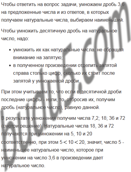 На какое наименьшее натуральное число надо умножить число 3,6, чтобы произведение было натуральным числом?