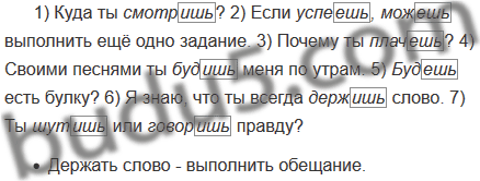 1) Куда ты (смотреть)? 2) Если (успеть), (мочь) выполнить ещё одно задание. 3) Почему ты (плакать)? 4) Своими песнями ты (будить) меня по утрам. 5) (Быть) есть булку? 6) Я знаю, что ты всегда (держать) слово. 7) Ты (шутить) или (говорить) правду?