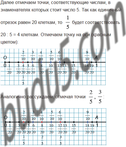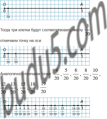 Начертите координатный луч, взяв за единичный отрезок, длина которого в 20 раз больше стороны клетки тетради. Отметьте на луче точки, соответствующие числам: