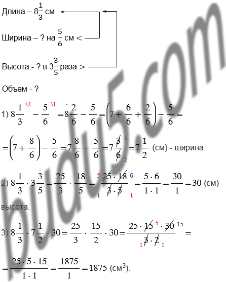 Длина прямоугольного параллелепипеда равна см, что на см больше его ширины и в раза меньше его высоты. Вычислите объем прямоугольного параллелепипеда.