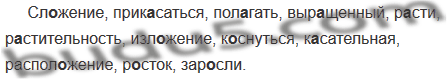 Сл..жение, прик..саться, пол..гать, выр..щенный, р..сти, р..стительность, изл..жение, к..снуться, к..сательная, распол..жение, р..сток, зар..сли.