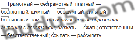 Грамотный — ...; платный — ...; шумный — ...; сильный — ...; там — ...; разжать —...; ответственный — ...; ссыпать — ....