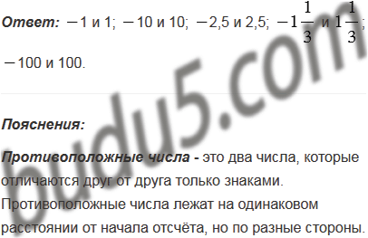 Назовите два числа, равноудалённые от числа 0 на координатной прямой. Назовите ещё четыре пары таких чисел.