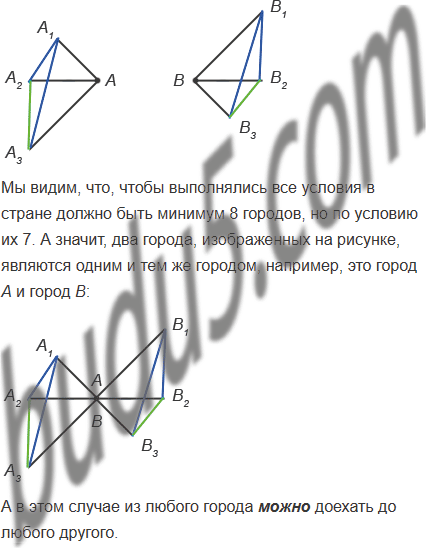 В стране Севентаун семь городов, каждый из которых соединён дорогами более чем с двумя городами. Докажите, что из любого города можно доехать до любого другого (возможно, проезжая через другие города).