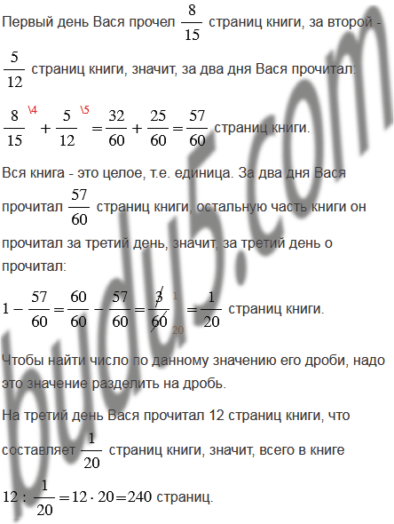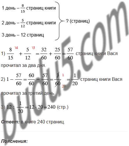 За первый день Вася прочел страниц книги, за второй - страниц книги и за третий день - оставшиеся 12 страниц. Сколько страниц в этой книге?