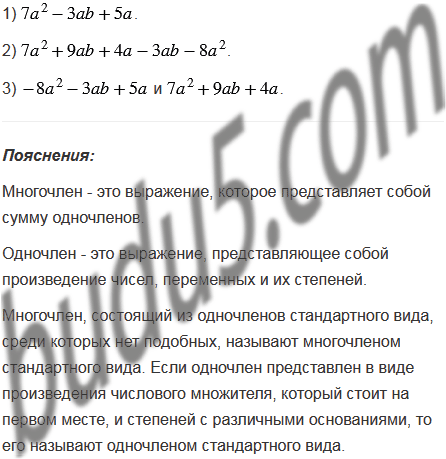 3) два многочлена стандартного вида, использовав при этом все данные одночлены.
