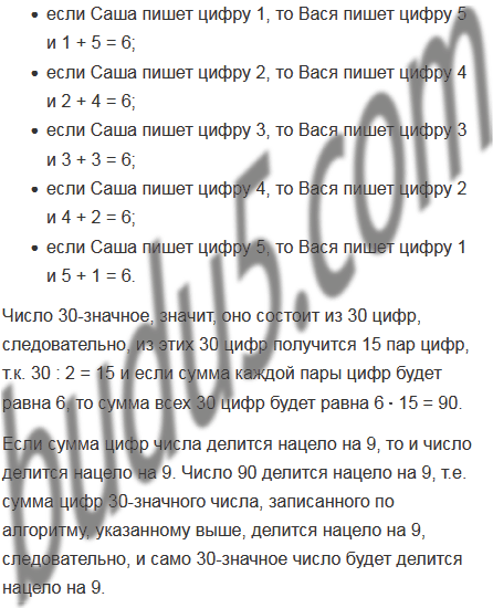 Саша и Вася записывают 30-значное число, используя только цифры 1; 2; 3; 4; 5. Первую цифру пишет Саша, вторую - Вася и т.д. Вася хочет получить число, кратное 9. Сможет ли Саша ему помещать?