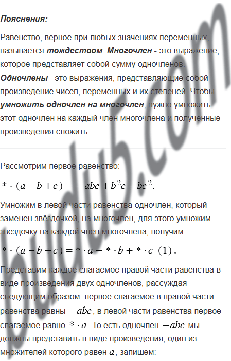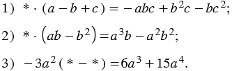 Замените звёздочки такими одночленами, чтобы образовалось тождество: