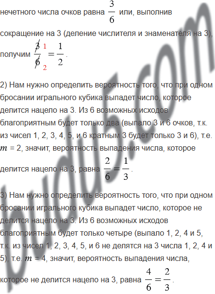 Какова вероятность того, что при бросании игрального кубика выпадет:
