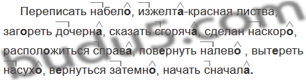 Переписать набел.., изжелт..-красная листва, заг..реть дочерн.., сказать сгоряч.., сделан наскор.., распол.. житься справ.., повернуть налев.., выт..реть насух.., в..рнуться затемн.., начать сначал.. .