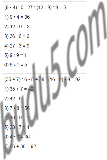 | (9 • 4) : 6 - 27 : (12 - 9) : 9 | (35 + 7) : 6 • 8 + 28 : (16 - 9) • 9 |