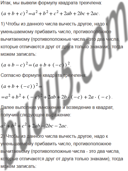 Выведите формулу квадрата трехчлена: