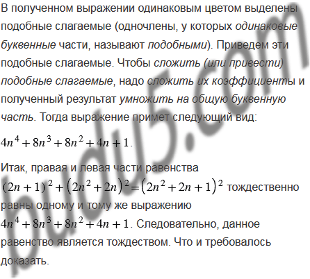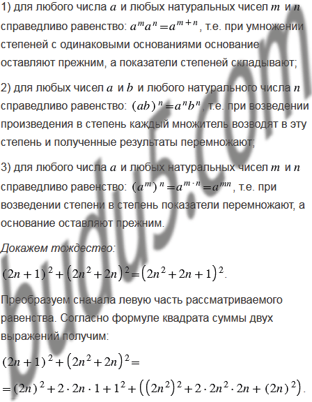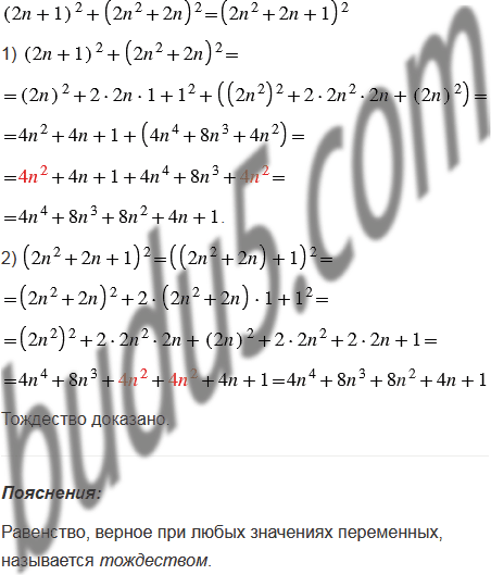 Данное тождество является правилом великого древнегреческого ученого Пифагора (VI в. до н.э.) для вычисления целочисленных значений длин сторон прямоугольного треугольника. При одних и тех же натуральных значениях