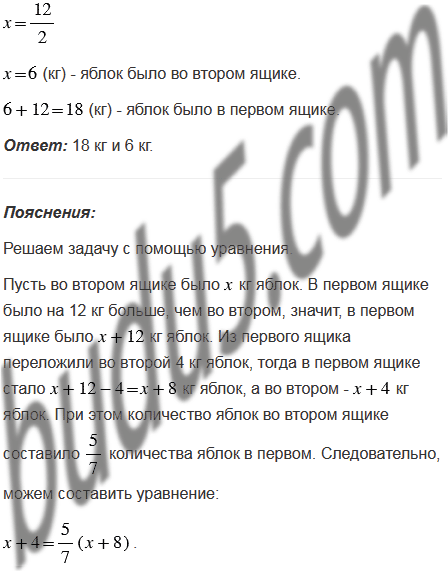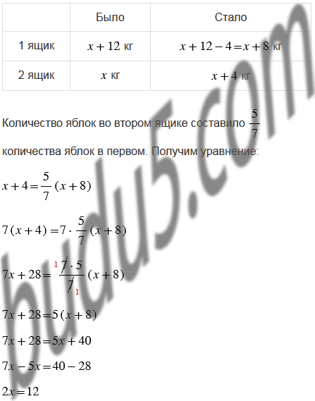 В одном ящике было на 12 кг яблок больше, чем в другом. Когда из первого ящика переложили во второй 4 кг яблок, то оказалось, что количество яблок во втором ящике составило