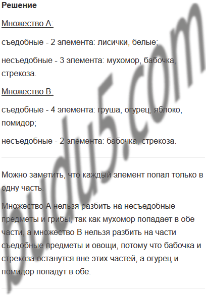 Можно ли разбить множество А на части: несъедобные предметы и грибы? Можно ли разбить множество В на части: несъедобные предметы и грибы? Можно ли разбить множество В на части: овощи и фрукты? Почему?