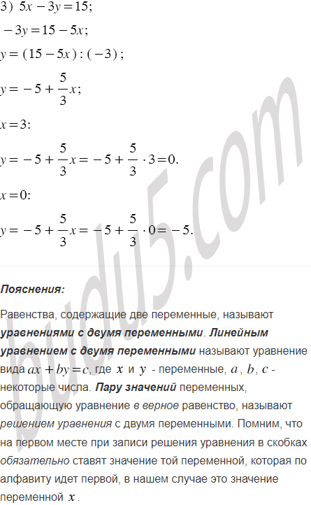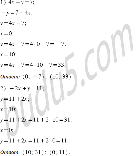 Выразите из данного уравнения переменную через переменную и найдите какие-нибудь два решения этого уравнения: