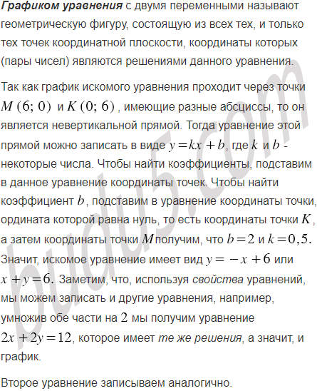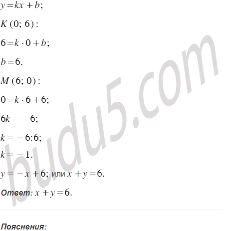 Составьте линейное уравнение с двумя переменными, график которого проходит через точки М(6; 0) и K(0; 6).