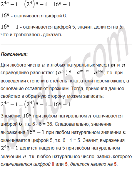Докажите, что значение выражения делится нацело на 5 при любом натуральном значении .