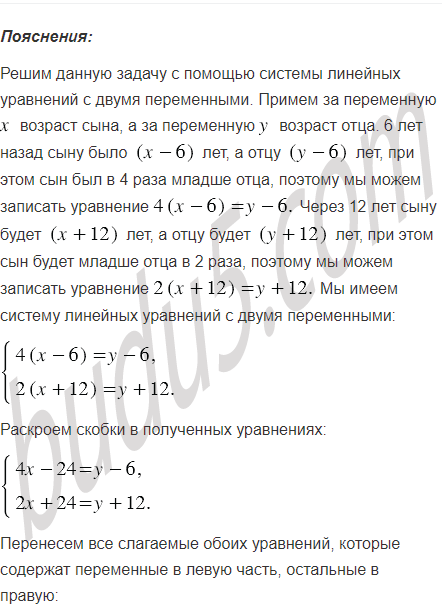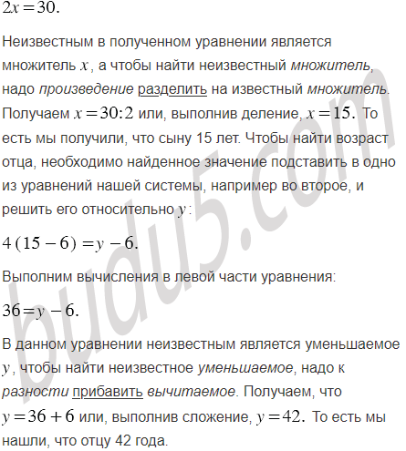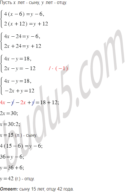 Сын 6 лет тому назад был в 4 раза младше отца,  а через 12 лет он будет младше отца в 2 раза. Сколько лет отцу и сколько - сыну?