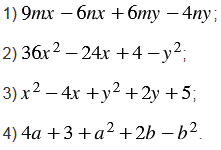 Из следующих четырех выражений только три можно разложить на множители. Найдите эти выражения и разложите их на множители: