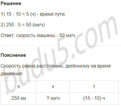 Задание № 6. Между городом и деревней 250 км. Машина выехала из города в 10 часов утра и прибыла в деревню в 3 часа дня. С какой скоростью она ехала?