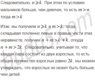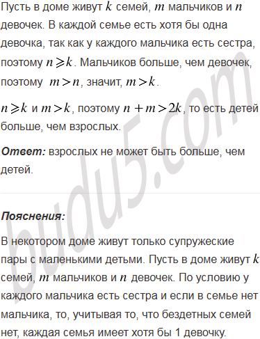 В некотором доме живут только супружеские пары с маленькими детьми, причем у каждого мальчика есть сестра и мальчиков больше, чем девочек. Может ли взрослых быть больше, чем детей?
