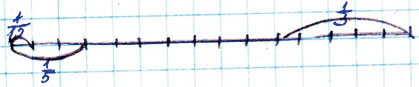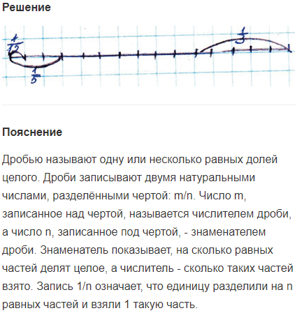 Задание № 6. Отметь на числовом луче доли: 1/15, 1/5, 1/3.
