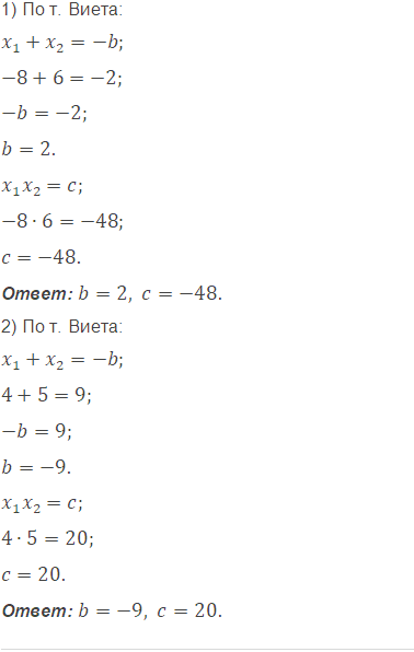 Найдите коэффициенты и уравнения , если его корнями являются числа: