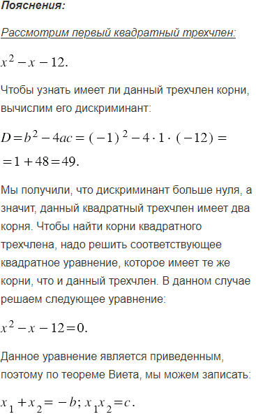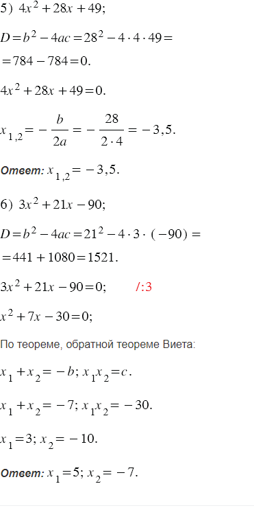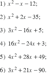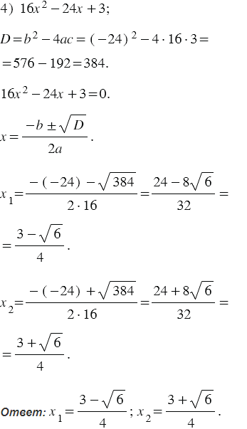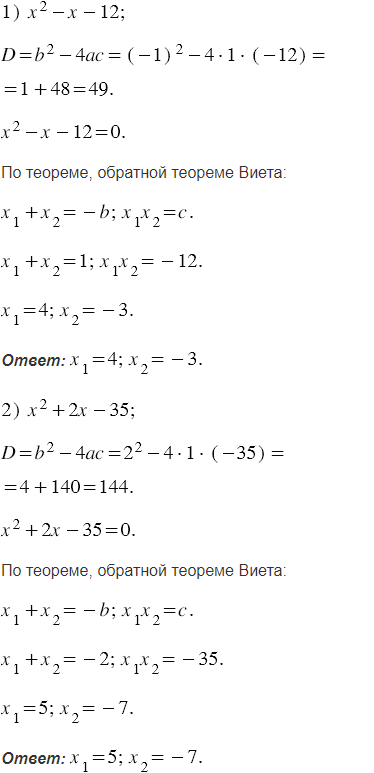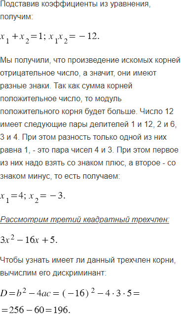 Найдите корни квадратного трёхчлена: