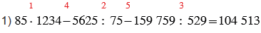 1) 85 • 1234 - 5625 : 75 - 159 759 : 529;