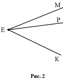 Если углы имеют общую вершину, то их нельзя обозначить одной буквой. Так на рис. 2 углы имеют общую вершину Е, поэтому мы можем использовать для данных углов только следующие обозначения: