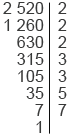 Найдем НОК(2520; 4620). Для это разложим данные числа на простые множители и запишем разложение в виде произведения степеней: