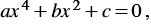 Уравнение вида где - переменная, и - некоторые числа, причём называют биквадратным уравнением.