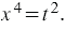 Решение: Пусть Тогда  Подставив в исходное уравнение вместо и соответственно и , получим квадратное уравнение с переменной
